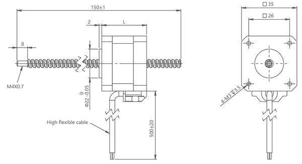 35mm Hybrid Stepper Motor Standard Through-Fixed Motor Outline Drawing: